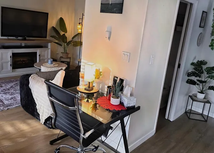 ( ex. Small Town Pearl L Charming & Cozy Private 2 Level Suite Near Red Deer L Yard & Bbq )